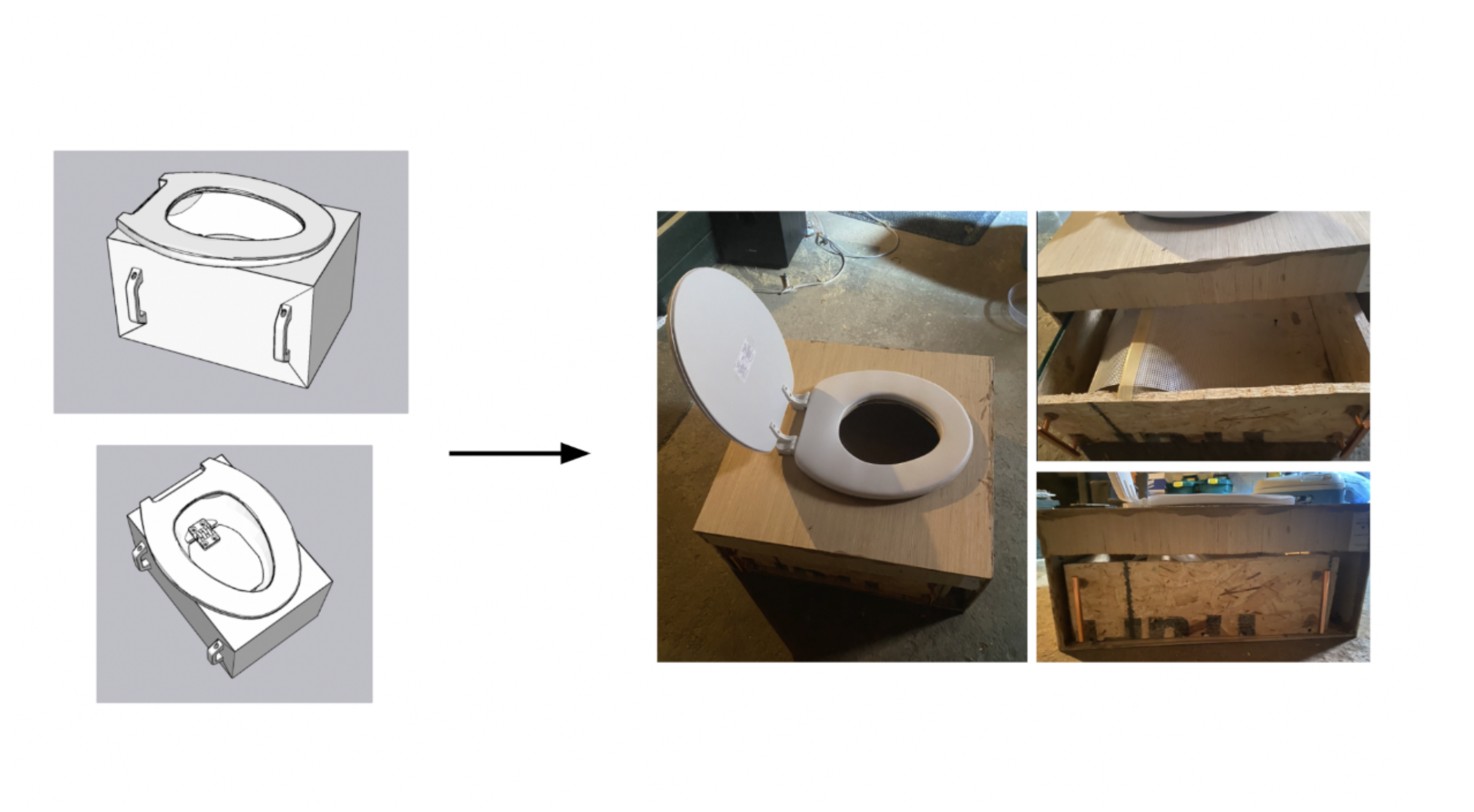 The toilet will be put into the family's home and we know that it'll fit inside because they have a living space of 450 square meters and our toilet takes up 100 square meters. They'll be using it for 15 days and it'll stay odorless as we have a trapdoor: